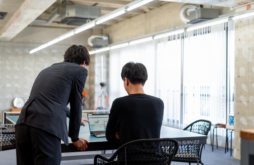 インターンシップ参加が決定したら、まず適性検査の結果をもとに、皆さんの強みやスキルを確認します。学生時代の活動や経験を振り返りながら面談を行い、その中でインターンシップのテーマを一緒に決定します。
