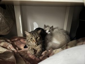 ベル君は元野良猫で、里親募集から引き取りました。メロちゃんはペットショップで一目惚れ…。